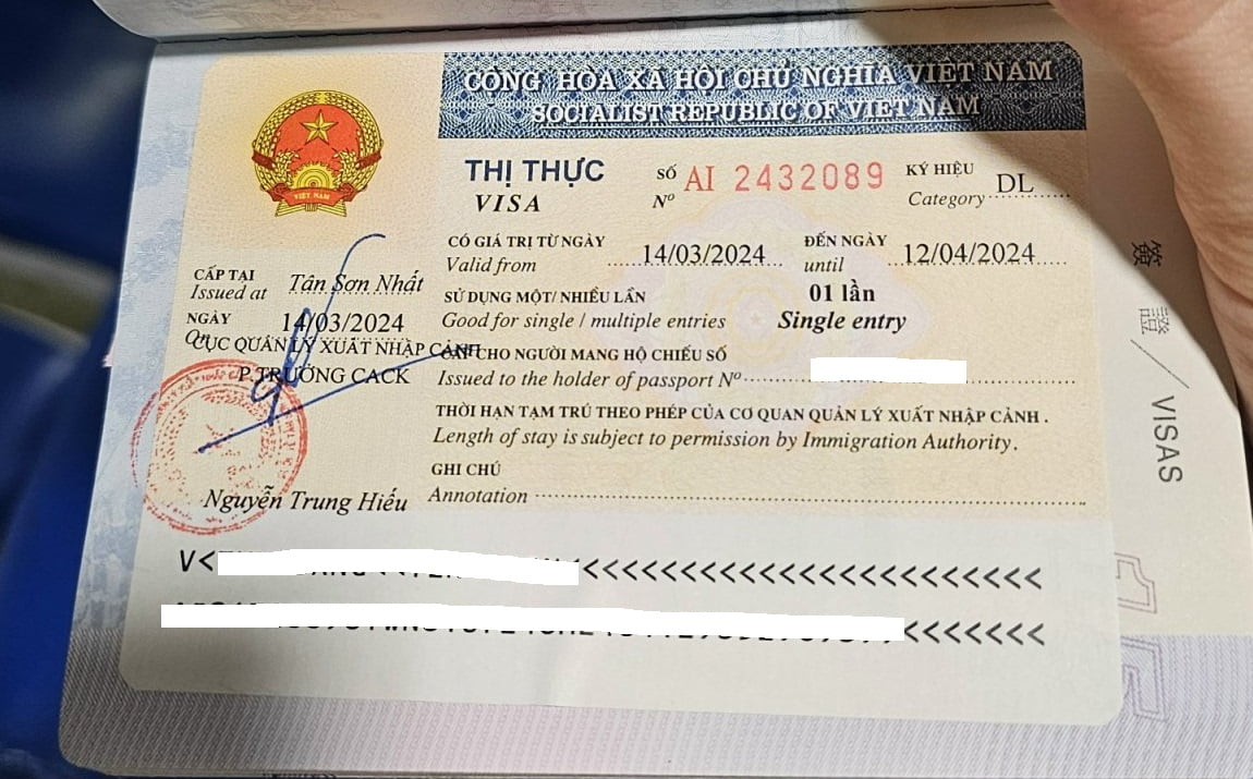 Once your business visa is approved, it will be affixed to your passport, allowing you to enter Vietnam.