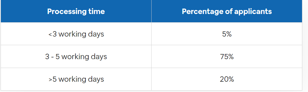 Processing times for the e-visa are as follows: